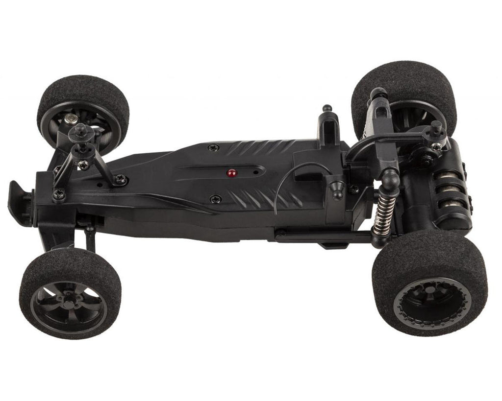 No need to prep or build your racer; just charge it and you’re ready to drive! The included 2.4GHz transmitter allows complete control, enabling you to navigate around, through and over obstacles with ease! Race-inspired wheels and body make for a great-looking package that will also perform well on the staggered-size foam tires.