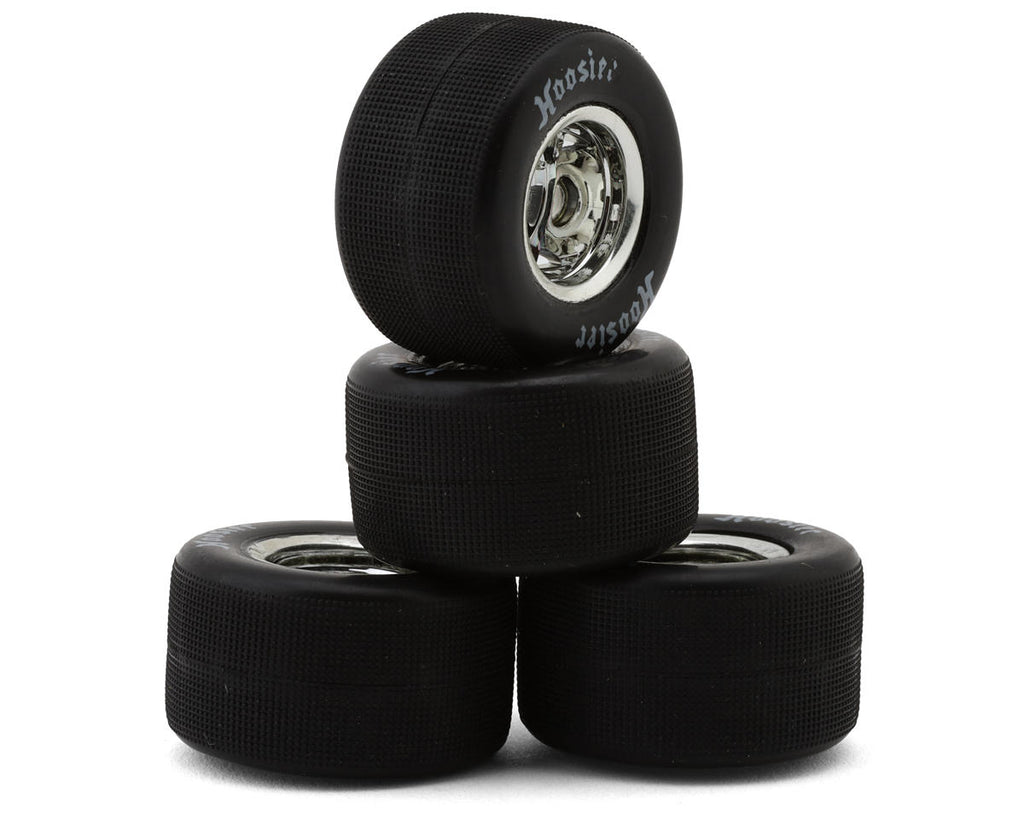 Pre-Mounted 1/18 Asphalt Modified Hoosier Tires. This is a replacement set of tires intended for the 1RC Asphalt Modified. Mounted on oval-style wheels.
