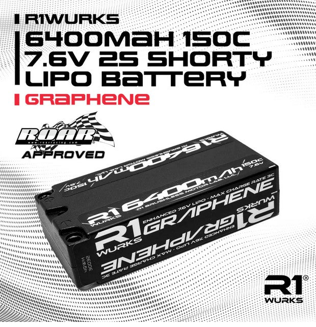 R1WURKS - 6400mah 150c 7.6v 2S Shorty LiPo Battery, Graphene