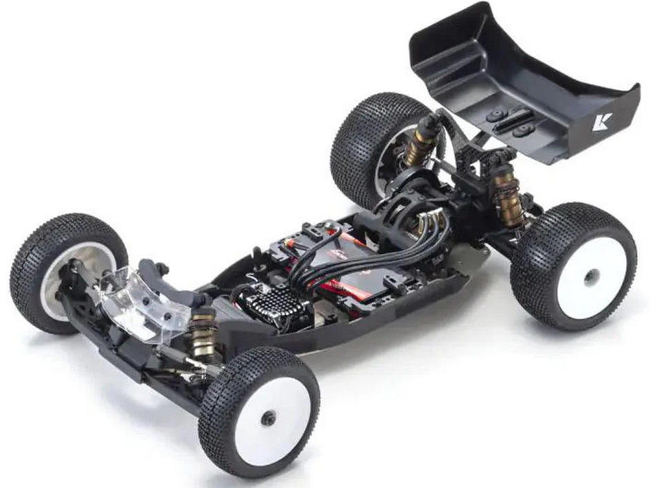 The Kyosho RB7.5 features upgraded 4mm thick carbon fiber front and rear shock stays, replacing the plastic components from the RB7 for enhanced strength and rigidity. This improvement not only boosts durability in high-impact racing conditions but also provides better protection against damage during rollovers. Additionally, a standard resin protector helps safeguard both carpet and artificial grass surfaces, ensuring longevity and consistent performance across various track types.