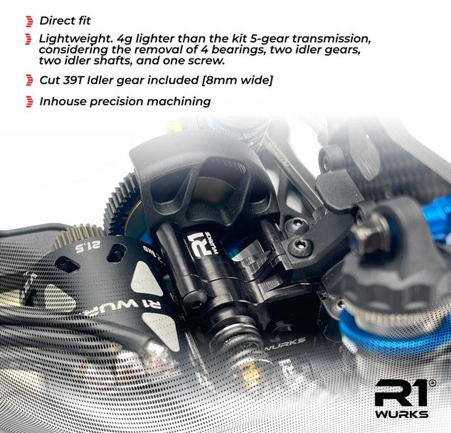 NOTE: This transmission requires the use of a lightened/cut 39T idler gear (included)