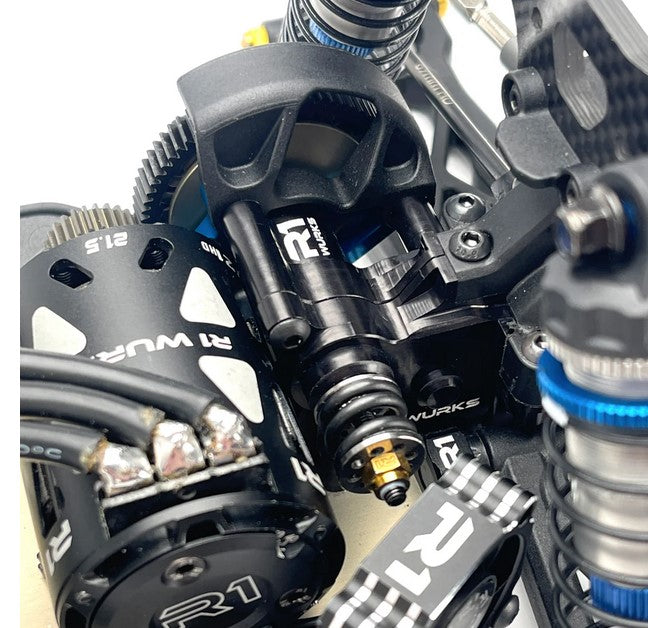 Tip: The transmission includes a fan mount that makes use of the stock fan location. Team drivers have found an additional mounting option by easily double-sticking the fan in front of the motor, between the motor and battery.