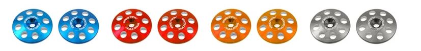 Exotek 22mm 1/8 XL Aluminum Wing Buttons are heavy duty, polished and anodized in a variety of colors to match your factory colors or paint scheme. The extra large 22mm diameter buttons are compatible with screw type wing mounts, and are thicker than 1/10 buttons, providing an incredibly secure hold on your wing and offering protection from crashes.