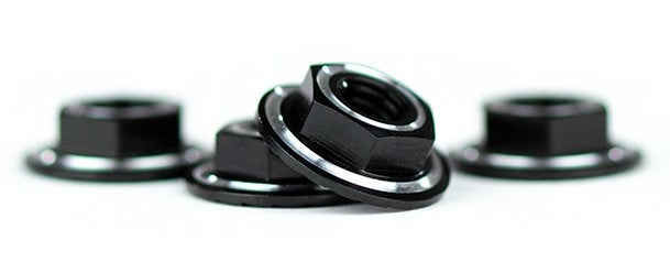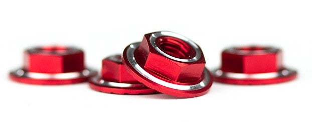 The Avid M4 Ringer Wheel Nuts are designed to be the strongest all-around wheel nut for offroad and touring car racing. The 11mm flange provides the needed support from potential wheel flex on high bite tracks. A thin 3.5mm thickness keeps weight down but also allows the nut to be used on 4wd fronts and if you cut your axles to length you will grab fewer pipes with them too. Then we added our *aggressive serrations so you don't have to tighten the wheel nut as much which helps in not deforming the wheel and ensures you will never pull the 7075-T6 threads out. And last but not least, the two silver highlights don't get lost on a white wheel giving you that extra pop.