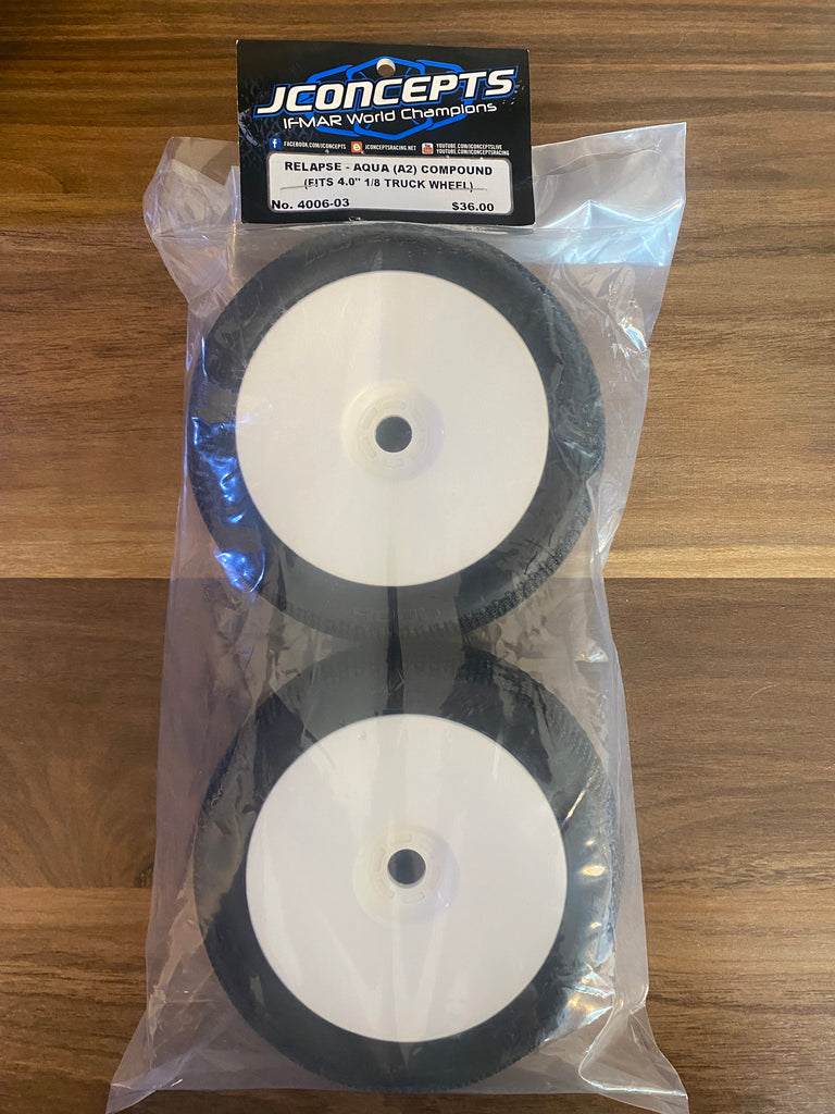 The JConcepts Relapse 4.0" 1/8th Truggy Tires with Foam Inserts are a tire that have been optimized for indoor and outdoor tracks. This Relapse tire is the result of the research and development JConcepts put into the Detox and Rehab tires and features more forward bite. This tire is available in multiple compounds to best match your driving conditions.