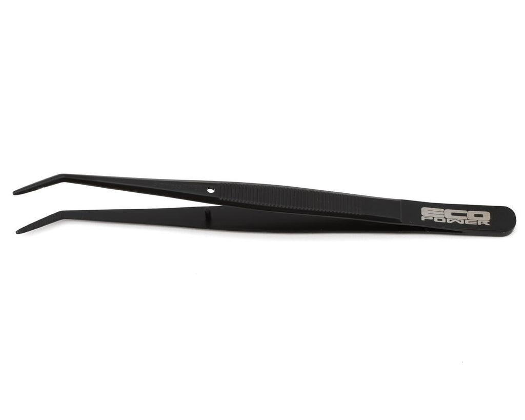 These EcoPower Accessories Curved Tweezers (Black) are ideal for precise handling of small parts and components. The curved tip allows for easy access to tight spaces, while the black-coated surface provides a non-glare grip.
