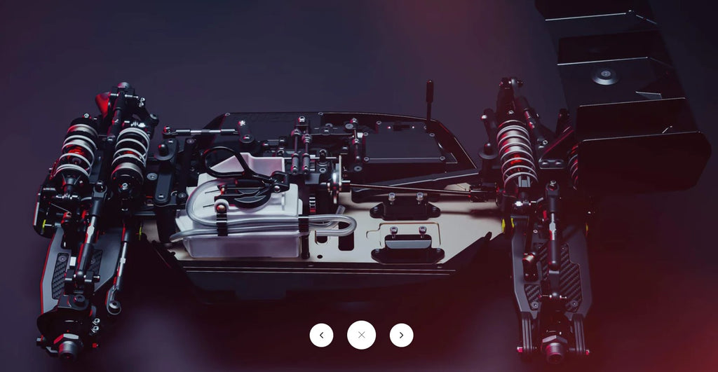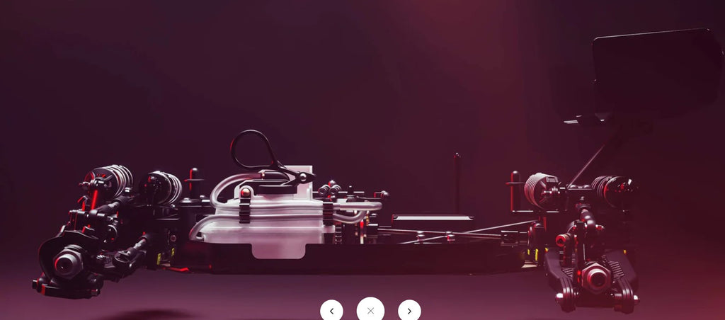 The innovative lay-down shock design and carefully positioned shock levers, not only give you an incredibly consistent and free shock stroke with no side loading, it also massively reduces the centre of gravity of the buggy, this means you can push harder on the track without the buggy getting unsettled by any bumps and ruts while maintaining a higher corner speed! Magic.