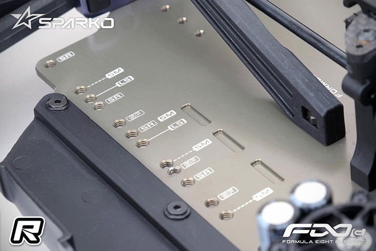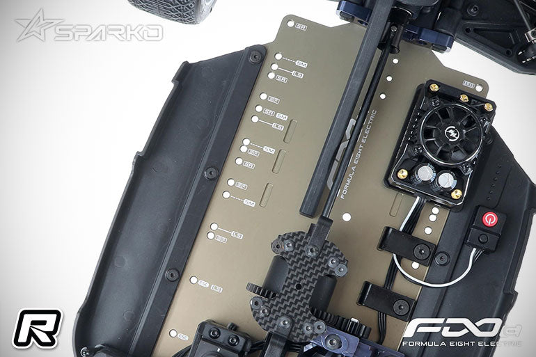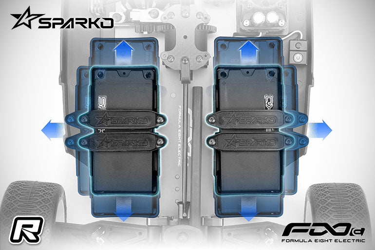 The SPARKO F8e 1/8 electric off-road buggy is a competition-level vehicle designed based on the concept of balance. This is the world's first battery mount design that provides the most configurations for a 1/8 vehicle in the industry. It can use batteries of different sizes to meet the power and time requirements for all racers around the world. In addition, the battery mount is designed in an eccentric mode. With multiple battery positions, balance response needs for all drivers and track conditions will be met.