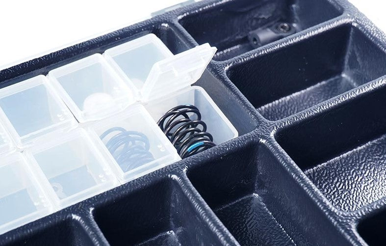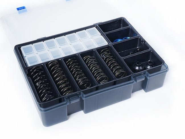 *2pcs 7 compartments parts boxes included for pistons, shims, o-rings & small accessories