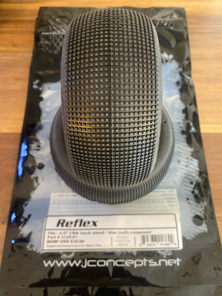 JConcepts' Reflex 4.0" 1/8th Truggy Tires bridge the gap between the popular Hybrid tire and other options such as the Subcultures and Stacker tire. The Reflex has square angled pins that are stacked vertically to flex and fold evenly across the tire. Typically a stacked tread will wear less and provide more forward bite while the aligned space helps rotation in the turns and gives a snappy release to square up quickly. Tires include Dirt-Tech inserts, popularized by its durable nature, giving customers the combo package they have been waiting for from JConcepts.